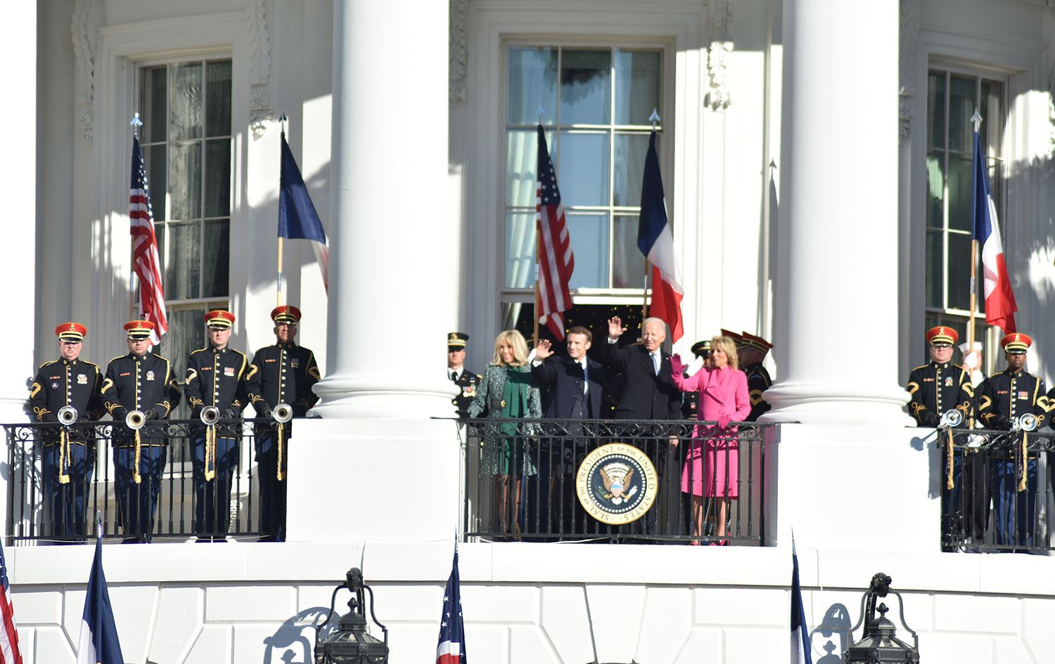 ABD Başkanı Joe Biden, Fransa Cumhurbaşkanı Emmanuel Macron'u Beyaz Saray'da düzenlenen resmi törenle karşılamıştı. / AA