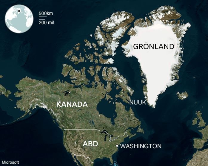 Grönland'ın başkenti Nuuk, New York'a Danimarka'nın başkenti Kopenhag'dan daha yakın.