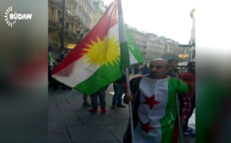 Viyana (Rûdaw) - Suriyeli Asuri aktivist Afram İshak, Rojava’nın (Suriye Kürdistanı) Amude kentinde Kürt Bayrağı’nın yakılmasını protesto etti.