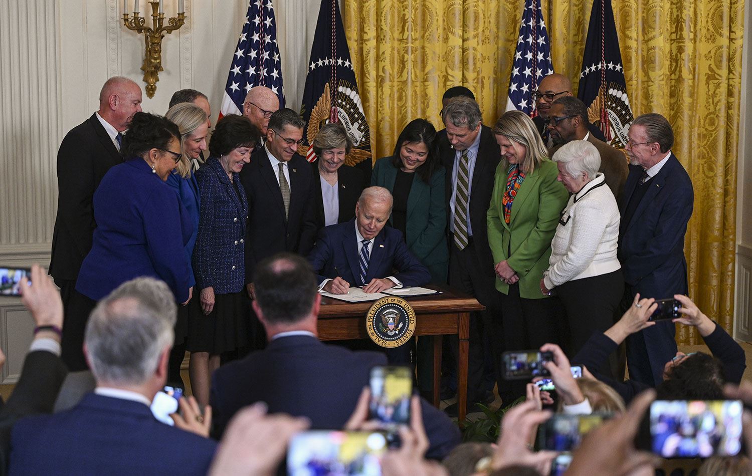 ABD Başkanı Biden, Beyaz Saray'da kamu çalışanlarının sosyal güvenlik haklarını korumayı amaçlayan "Sosyal Güvenlik Adaleti Yasası"nı imzalarken. / Foto: AA