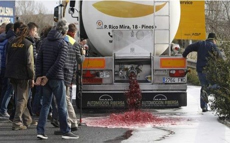 Geçen yıl Temmuz ayında Fransız çiftçiler, ithal ürünlerini taşıyan İspanyol kamyonlarına saldırmış, Madrid de yine benzer bir protesto iletmişti. (Kaynak:BBC)