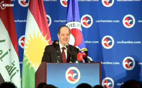 Başkan Barzani, ABD Ticaret Merkezi’nde yatığı konuşmada, Başkan Barack Obama ve yardımcısı Joe Biden’a, IŞİD’e karşı savaşta verilen destekten dolayı Kürt milletinin selamını ilettiğini söyledi.