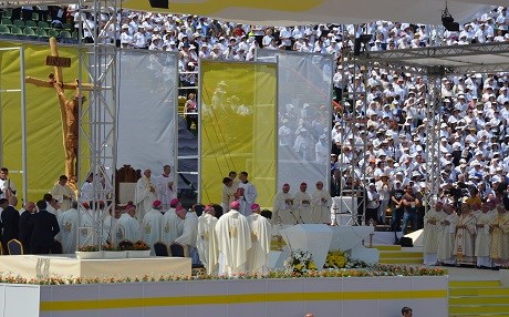 Ayin için kulanılan sunağı kutsadıktan sonra bugüne özel üretilen sandalyeye oturan Papa Francesco, yüzlerce kişiden oluşan koronun söylediği ilahileri dinledi.