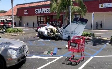 İtfaiye yetkilileri, California'nın güneyindeki alışveriş merkezinde bulunan otoparka çift motorlu küçük bir uçağın düştüğünü bildirdi.