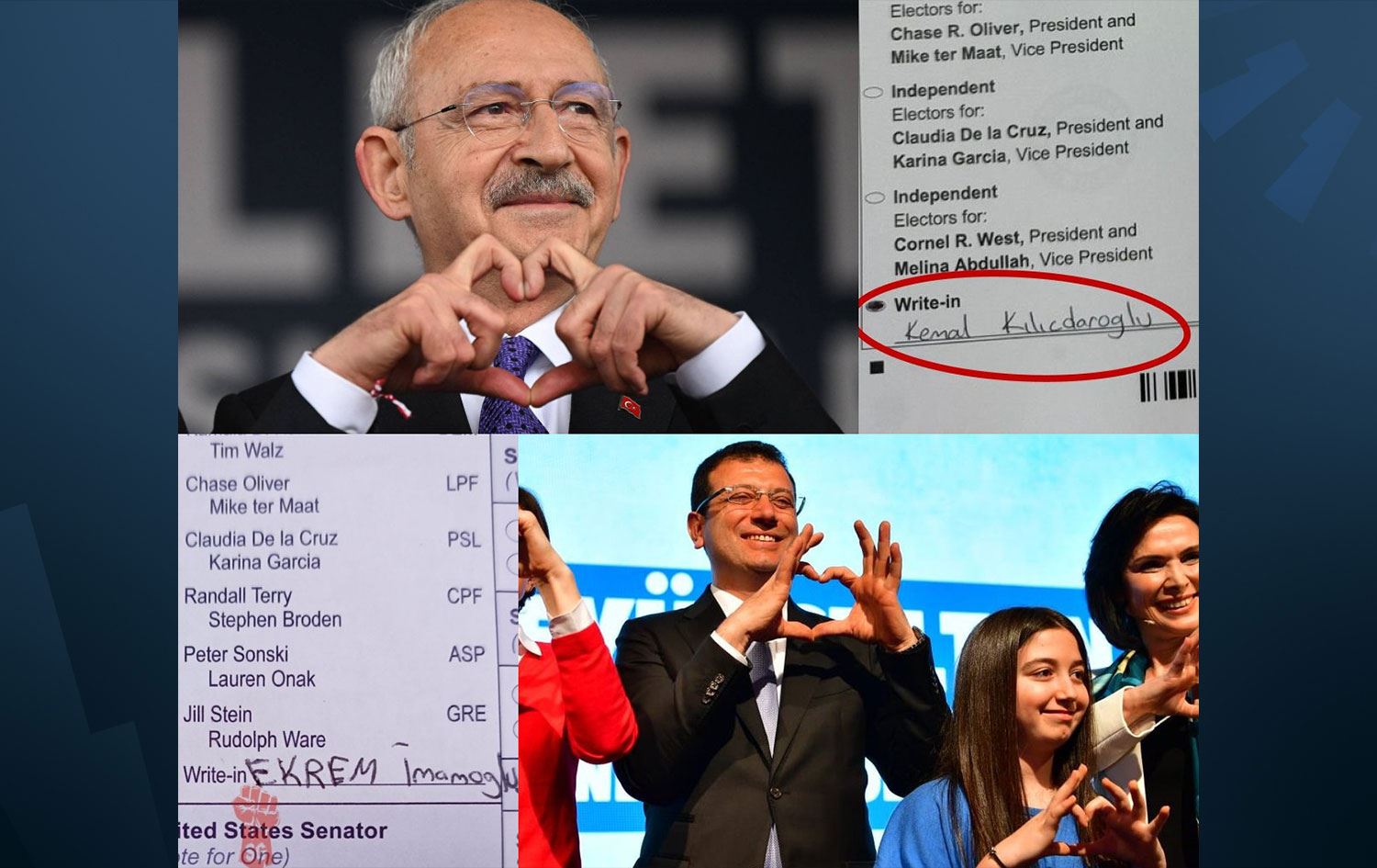 ABD Başkanlık seçimlerinde ilginç görüntüler ortaya çıktı. Oy sayımında Kılıçdaroğlu'nun seçim kağıdına aday olarak yazılması dikkat çekti. bir seçmenin oy pusulasına el yazısıyla İstanbul Büyükşehir Belediye Başkanı "Ekrem İmamoğlu" yazdığı anı yansıttı.