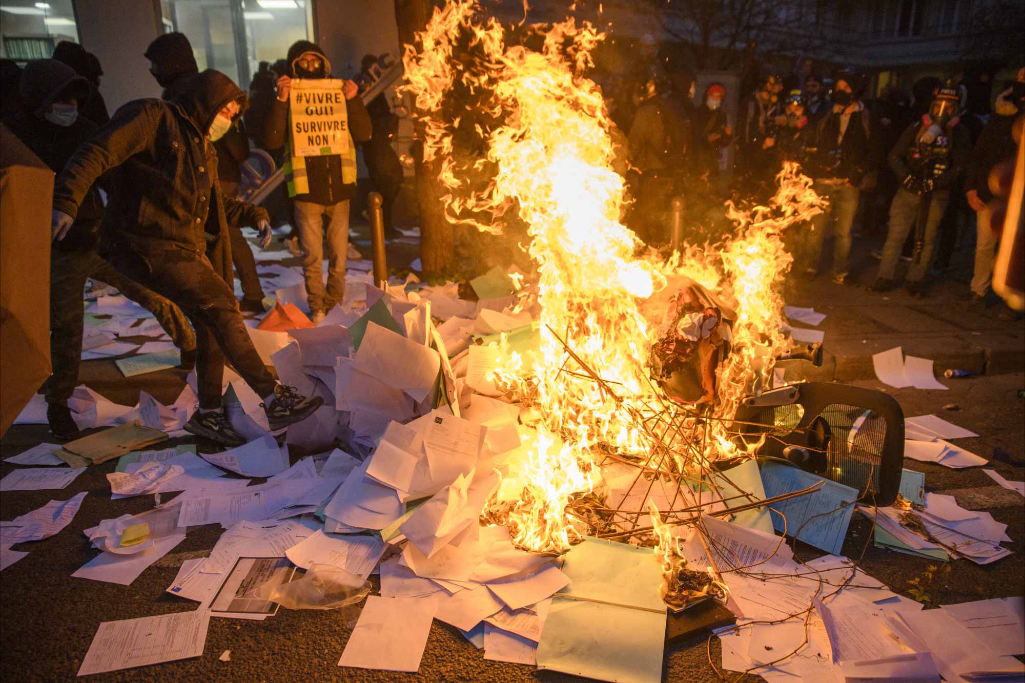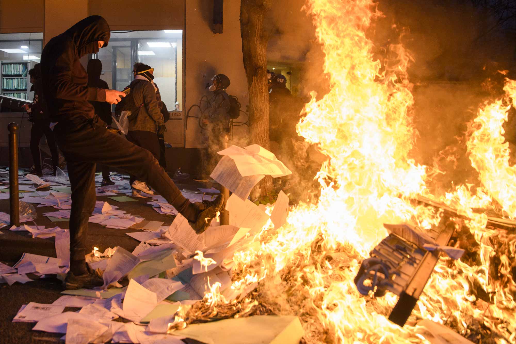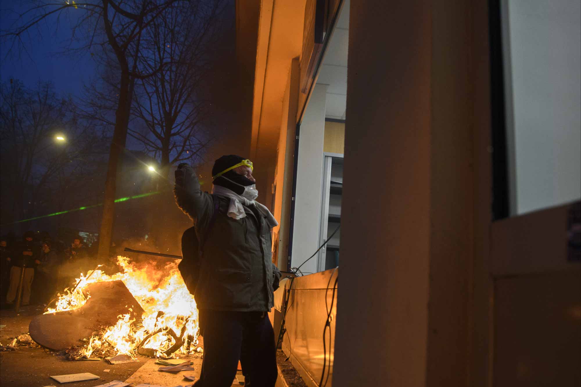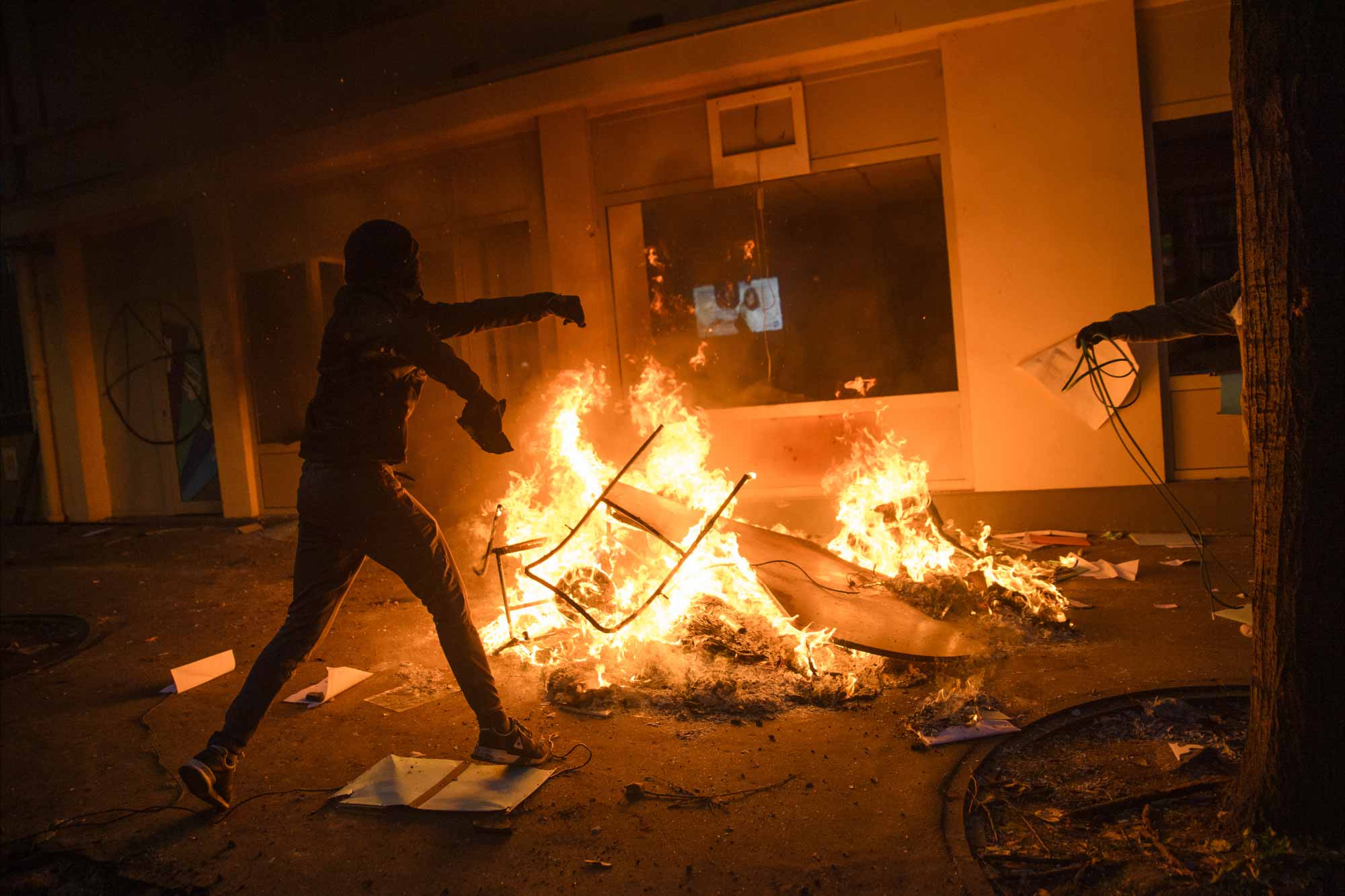 Polis, göstericilere biber gazıyla müdahale etti. Eylemciler, birçok araç ve çöp bidonu ateşe verdi, bir mağazayı yağmaladı.