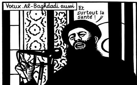 Bu arada, derginin hesabından yaklaşık iki saat önce paylaşılan karikatürde, IŞİD lideri Ebubekir El Bağdadi olarak çizilen bir karakter ve "Herkese sağlık dolu bir yıl diliyorum" sözleri yer alıyor.