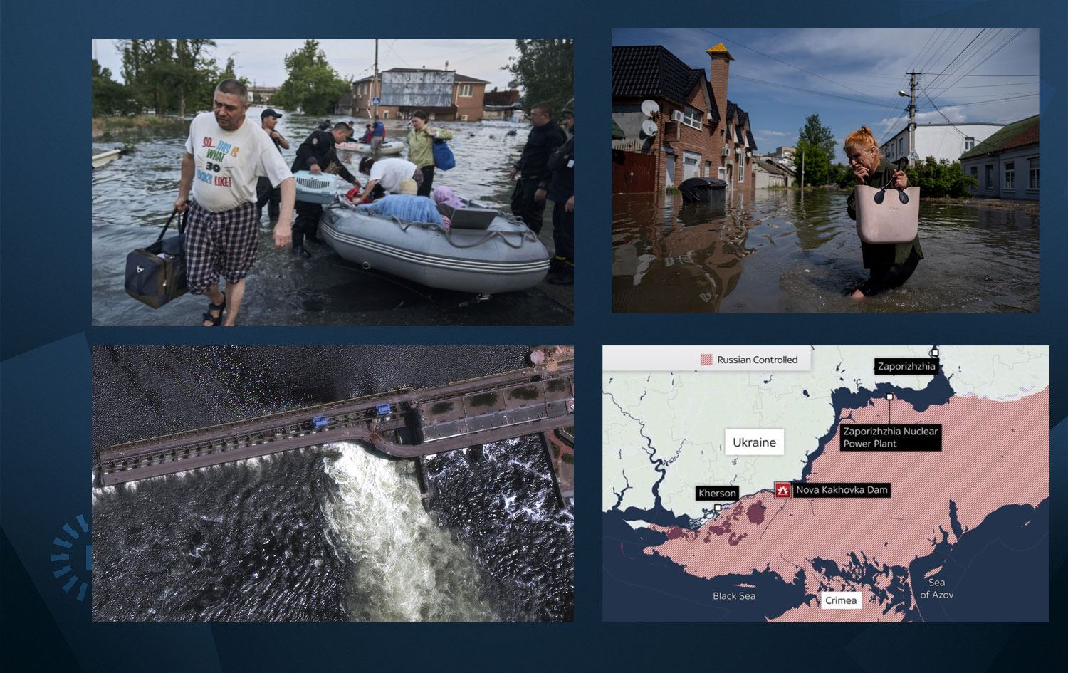 Ukrayna topraklarında Rusya ile devam eden savaşta, top atışlarıyla isabet alan Kahovka Barajı yıkıldı. Baraj sularının etkilediği Herson bölgesindeki son durum bölge sakinlerince kaydedildi.