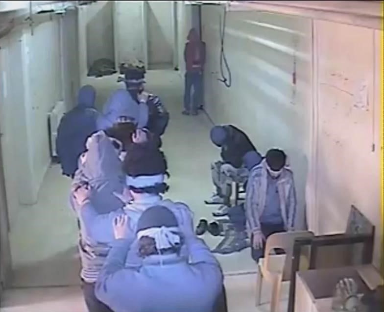 Görüntülerde gözleri ve elleri bağlı olan mahkumların sopalarla dövüldüğü, filistin askısıyla tavana asıldıkları, kolları arkadan bağlı, gözleri kapalı mahkumların zorla yürüdüğü görülüyor.