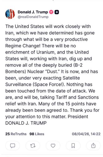 Haber Merkezi - ABD Başkanı Donald Trump, sosyal medya hesabı üzerinden yaptığı açıklamada İran ile varılan ateşkesin detaylarını ve yeni ekonomik yaptırım kararlarını duyurdu. Trump, İran'ın nükleer kapasitesinin tasfiyesine yönelik somut adımları paylaşırken, Tahran’a silah sağlayan ülkelere yönelik ağır gümrük vergisi uygulanacağını açıkladı.
