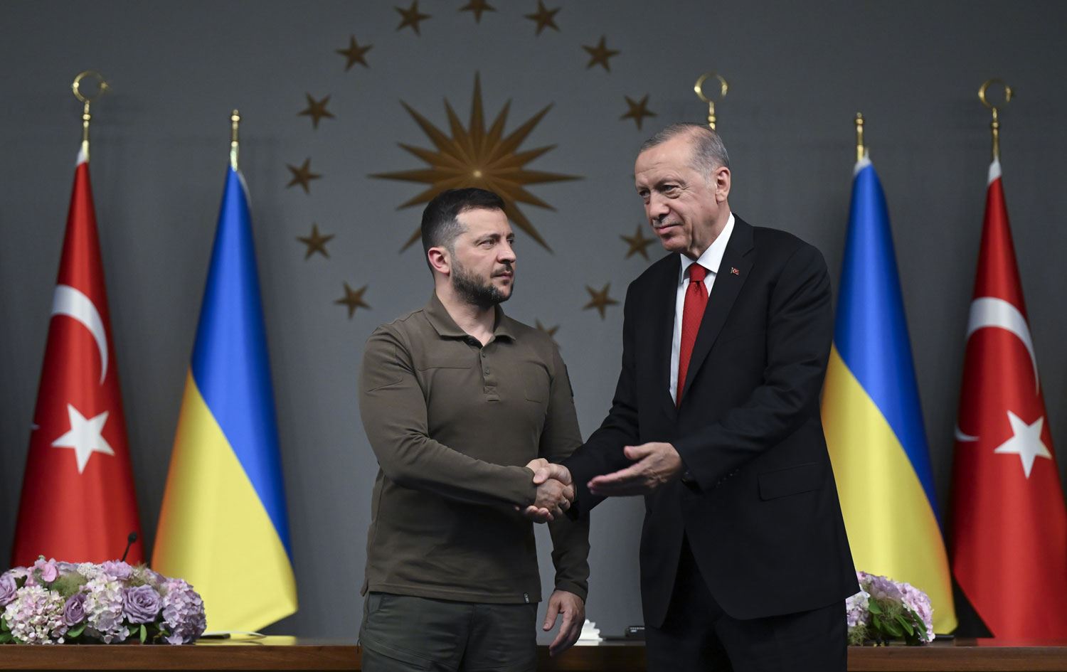 Erdoğan ile Ukrayna Devlet Başkanı Volodimir Zelenskiy, Vahdettin Köşkü'nde yaptıkları baş başa görüşmenin ardından ortak basın toplantısı düzenledi.