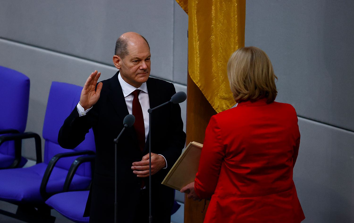Başbakan Scholz ve bakanların, Federal Mecliste yemin etmesinin ardından başkent Berlin'deki Başbakanlıkta görev teslim töreni yapıldı.