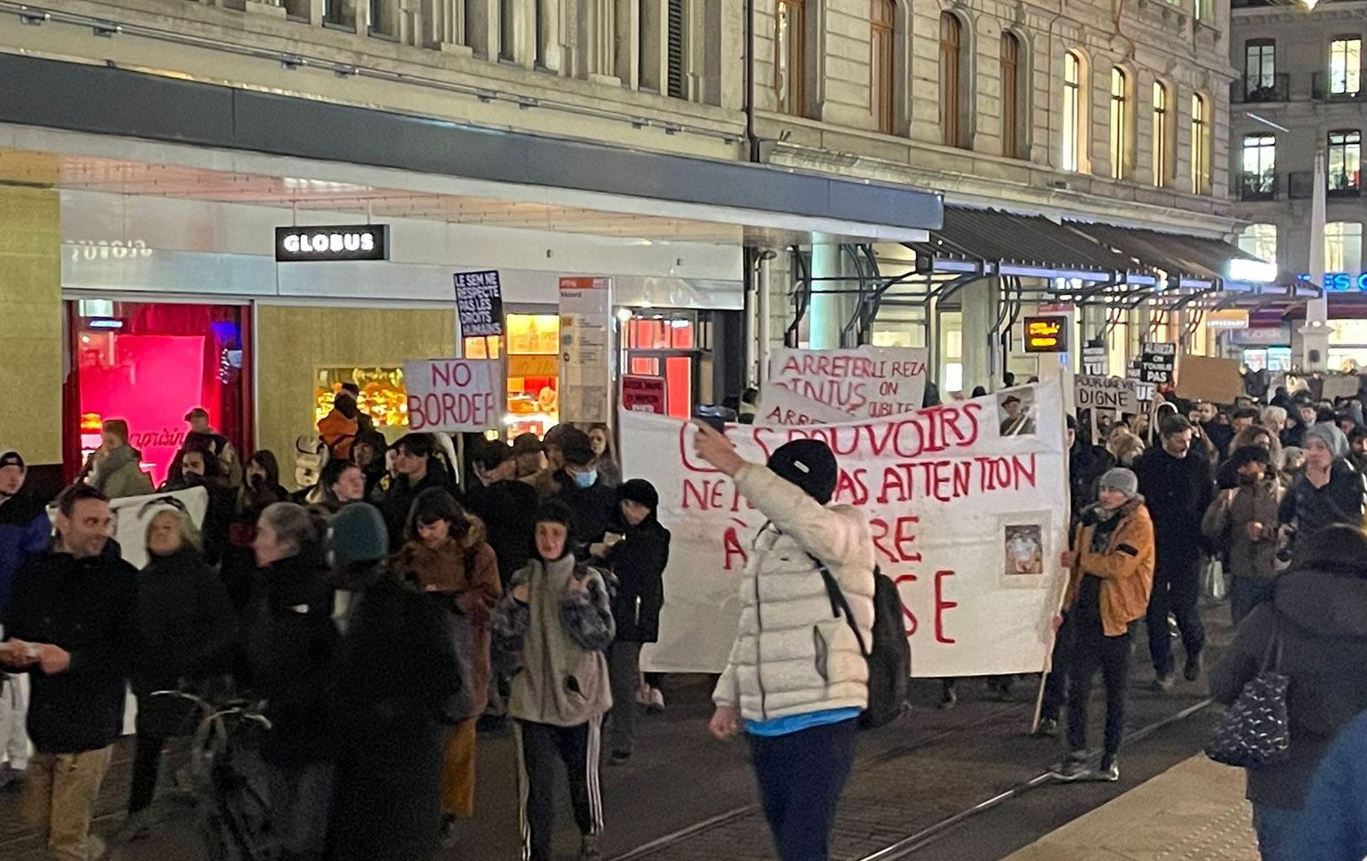 Afgan mültecinin intihar haberinin ardından Cenevre'nin Bel Air caddesinde binlerce kişi protesto düzenledi.