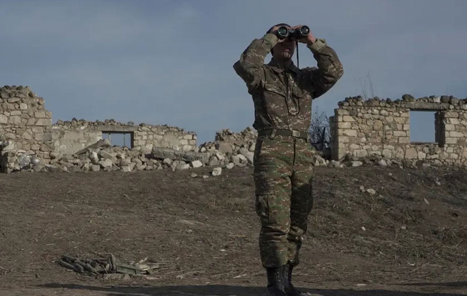 Bir Ermenistan askeri, Dağlık Karabağ bölgesindeki Taghavard köyü yakınlarındaki savaş mevzisinde dürbünle bakıyor. 11 Ocak 2021./ Reuters