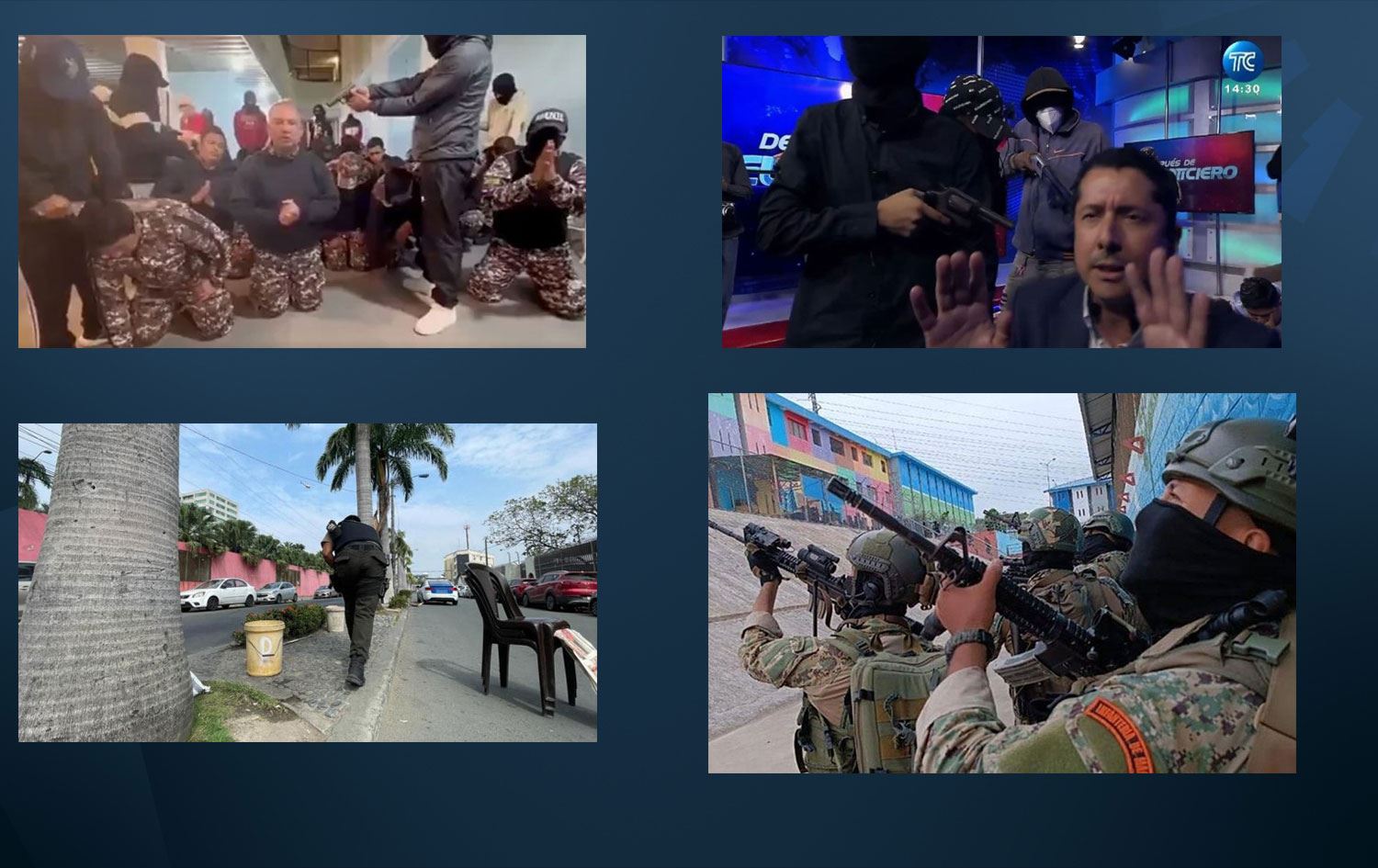 Ülkeden gelen son görüntülerde sokaklarda panik havasının hakim olduğu, Ekvador ordusunun karışıklık çıkan bölgelere sevk edildiği görüldü. Öte yandan Ekvador'daki bir televizyon kanalını basan çete üyeleri, gazeteci ve çalışanları rehin aldı.