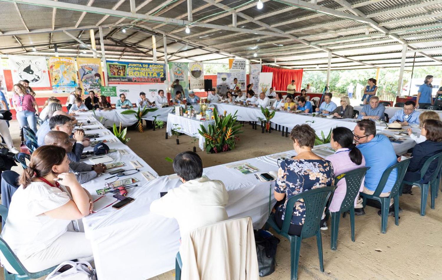 BM Güvenlik Konseyi üyeleri, 2016 yılında Kolombiya hükümetiyle barış anlaşması imzalayan FARC'ın eski üyeleriyle Florencia yakınlarındaki Agua Bonita'da dün bir toplantı yaptı. / AFP