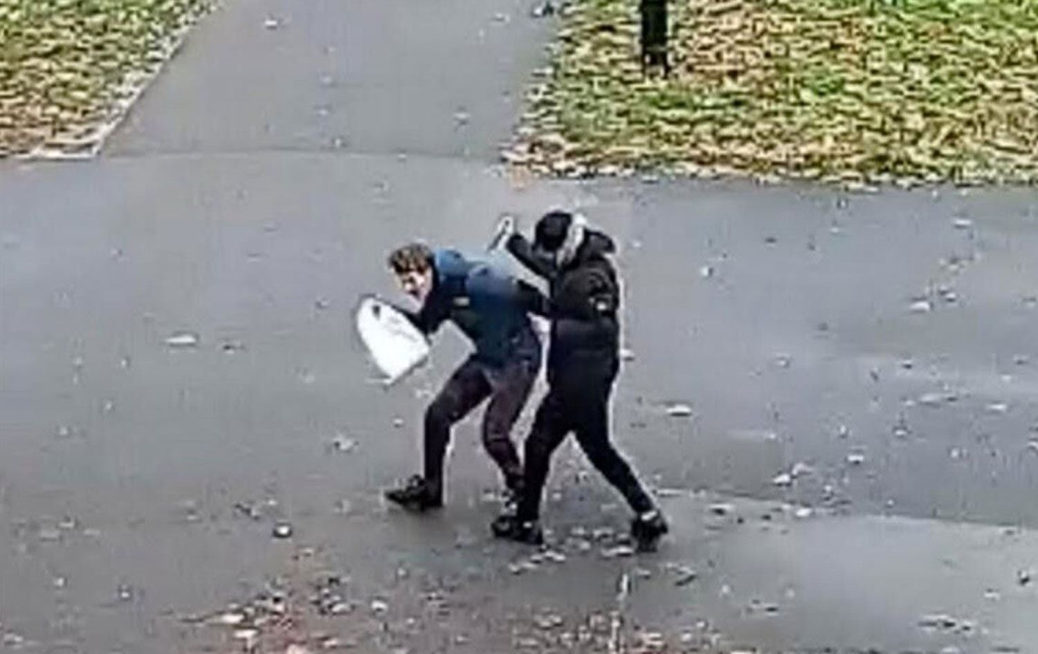 Saldırıya maruz kalan İngiltere vatandaşı kaçarken Rêbaz Muhammed, güvenlik kameralarının görüş açısından çıkana kadar onu kovalıyor.