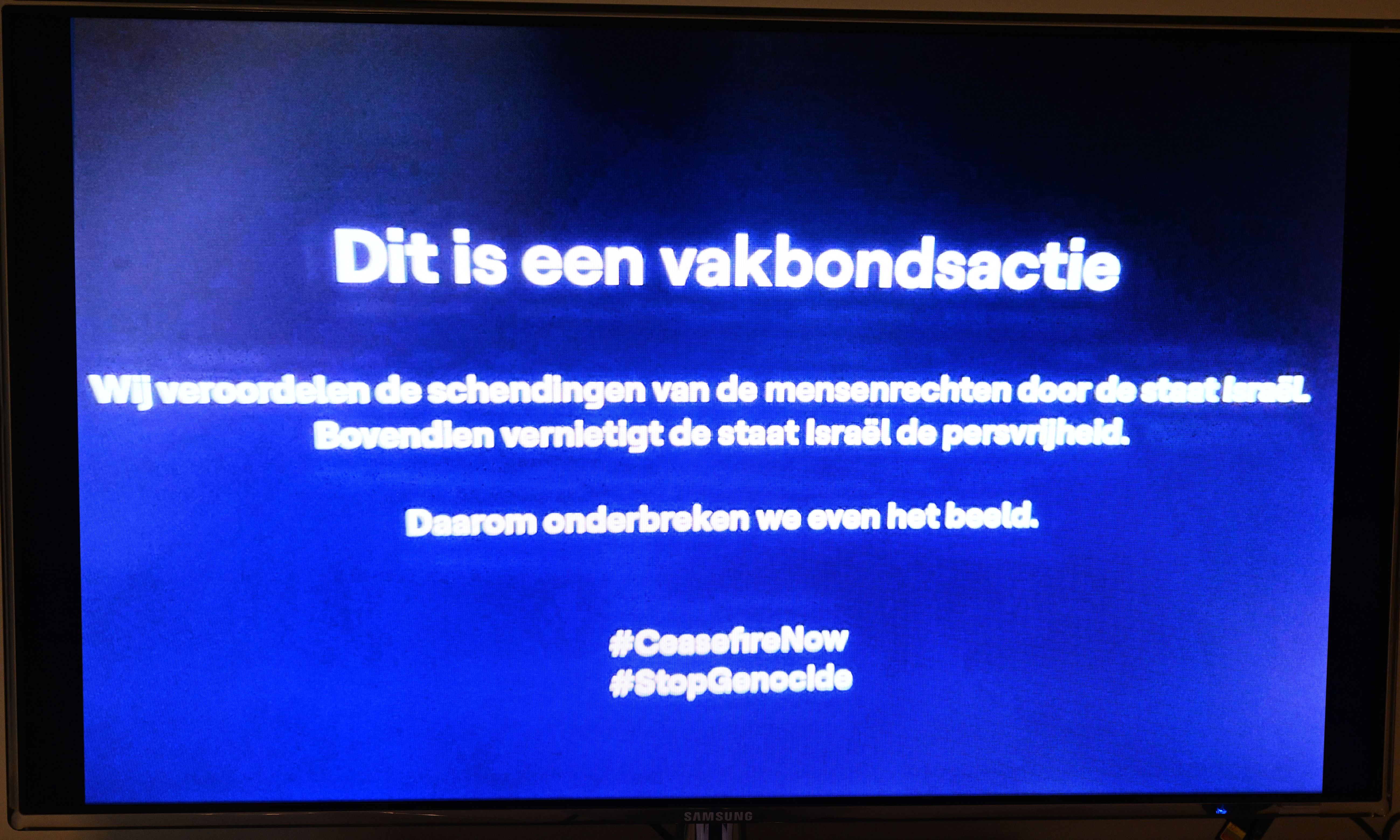 Kanalın yayımladığı mesajda "Bu, bir sendika eylemidir. İsrail devletinin insan hakları ihlallerini kınıyoruz. Ayrıca İsrail, basın özgürlüğünü yok ediyor. Bu nedenle yayınımıza bir süreliğine ara veriyoruz. Şimdi ateşkes" ifadeleri kullanıldı.