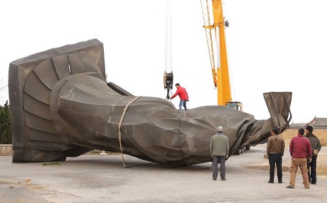 6 ton ağırlığında ve 19 metre uzunluğundaki Çin Hanedanı'nın kurucusu ve ülkenin ilk imparatoru Çin Şi Huang'a ait heykel rüzgar sebebiyle devrildi ve vinç yardımıyla yerinden kaldırıldı.