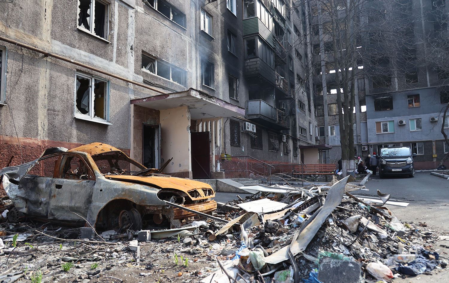 Rusya'nın kuşatması altında olan Mariupol’de devam eden çatışmalarda çok sayıda bina ve araç hasar gördü. / AA