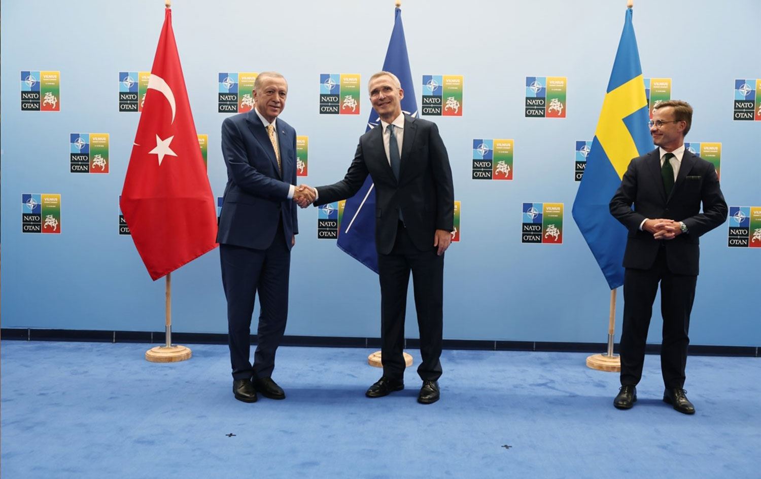 Türkiye Cumhurbaşkanı Recep Tayyip Erdoğan, NATO Devlet ve Hükümet Başkanları Zirvesi'ne katılmak üzere geldiği Litvanya'nın başkenti Vilnius'ta NATO Genel Sekreteri Jens Stoltenberg ve İsveç Başbakanı Ulf Kristersson görüştü. Toplantının ana gündemi İsveç'in NATO üyeliği oldu.