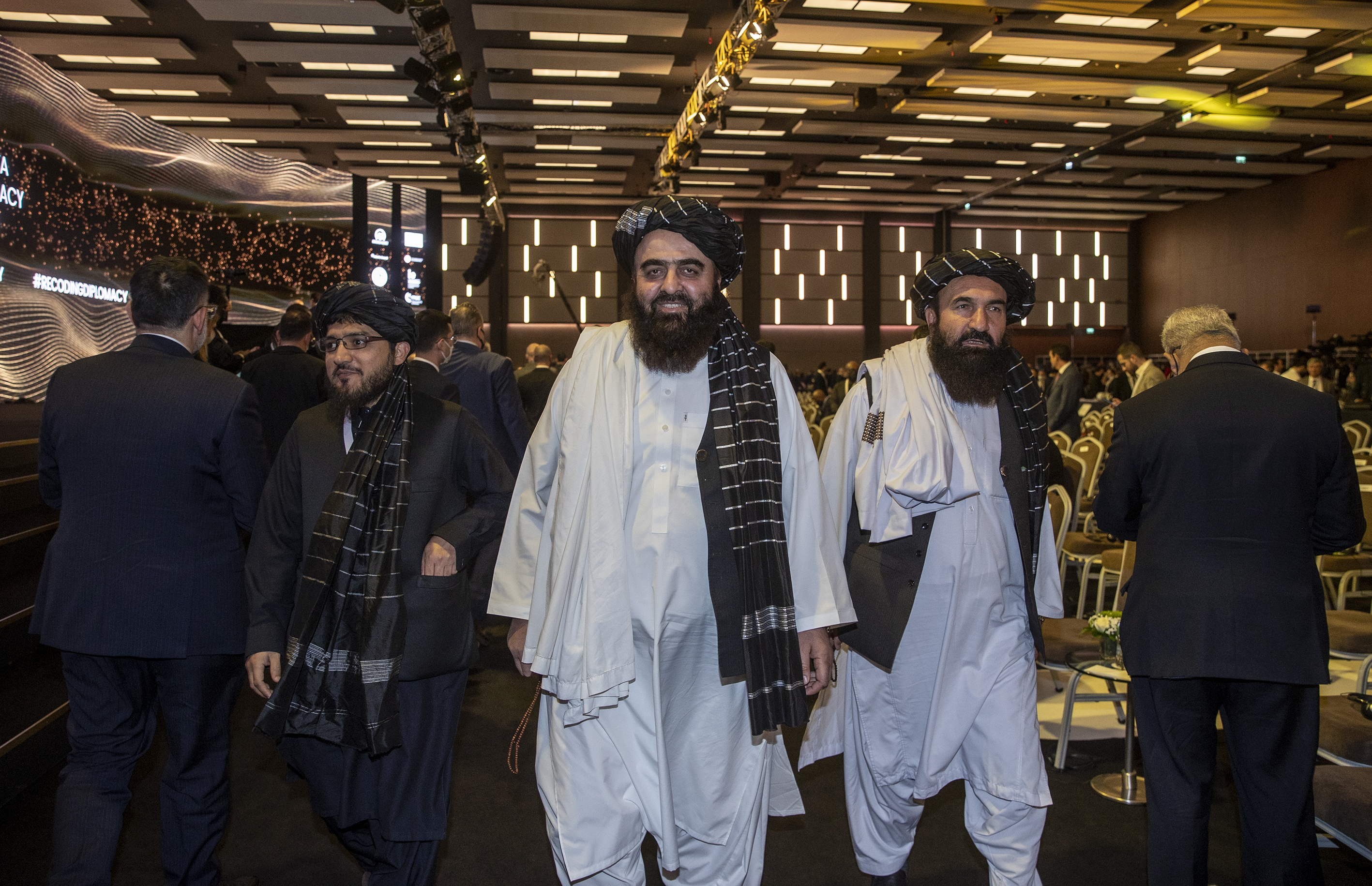 Afganistan'ın 40 milyon nüfusa sahip büyük bir ülke olduğunu, tüm dünyayla entegre şekilde ortak çıkarlar temelli etkileşim kurmak istediklerini aktaran Muttaki, "Başta ABD olmak üzere tüm dünyaya bize karşı ekonomik yaptırımlar yoluyla baskı kurmak yerine iş birliği içinde çalışmaları mesajını yolluyoruz. Yaklaşık 40 yıldır devam eden savaşların sona ermesini istiyoruz. IŞİD tehdidini bertaraf eden, merkezi ve barışçıl bir hükümete sahibiz" ifadelerini kullandı.