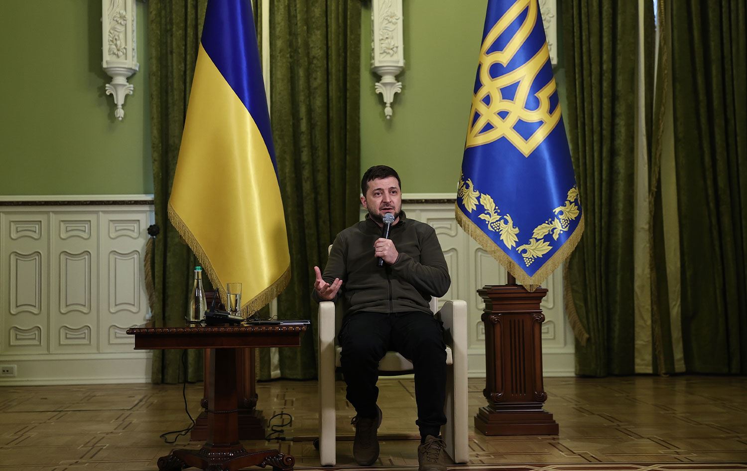 Zelenskiy, Kiev'deki Devlet Başkanlığı Çalışma Ofisi'nde düzenlediği basın toplantısında, yabancı gazetecilerin sorularını yanıtladı.