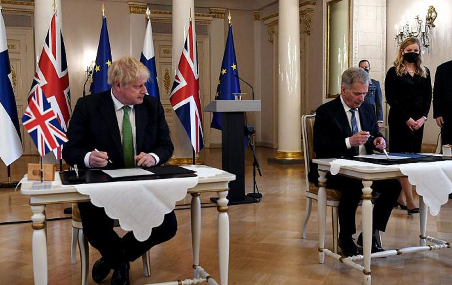 Johnson ve Niinisto, ikili görüşmelerinin ardından güvenlik alanında iş birliği, istihbarat paylaşımı ve ortak askeri operasyonların yapılmasını kapsayan güvenlik deklarasyonuna imza attı.