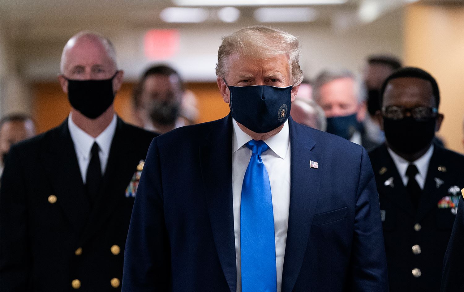 Maryland’deki Walter Reed Askeri Tıp Merkezi’ndeki yaralı askerler ve sağlık çalışanlarını ziyaret eden Trump, kameraların karşısına ilk kez maskeli çıktı.