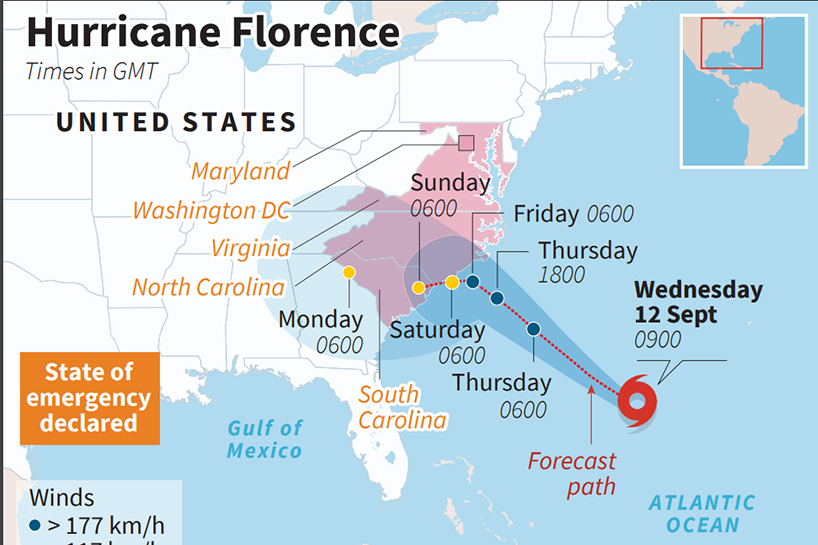 AFP – ABD'nin doğu yakası onlarca yıldır gerçekleşen en büyük kasırgaya dönüşme ihtimali olan Florence Kasırgası'na hazırlık yapıyor.