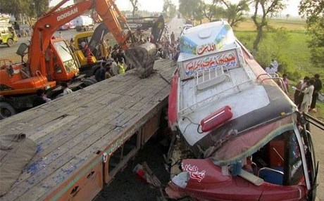Pencap eyaletindeki Faysalabad şehrinin yakınlarında bir yolcu otobüsü ile TIR kafa kafaya çarpıştı.