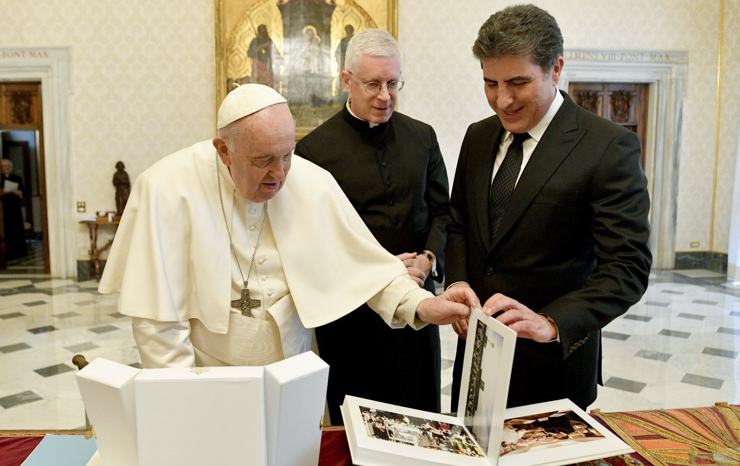 Barzani, Kürt ressam Xeyrî Adem’in Kürdistan Bölgesi’ndeki bir arada yaşamı resmettiği tablosunu Papa’ya hediye etti.