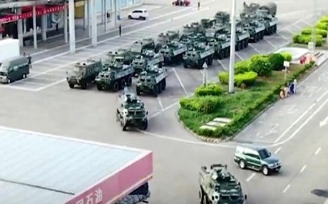 Çin askeri araçlarının Hong Kong'a yakın Shenzen yakınlarınında sınıra konuşlandığı anların görüntüleri yayınlandı.