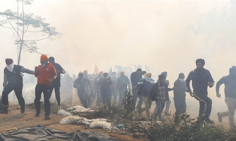 Reuters’ta yer alan habere göre protestocular, Pencap ve Haryana'yı ayıran Shambhu sınırında, varış yerlerinden yaklaşık 200 kilometre uzakta güvenlik güçleri tarafından durduruldu. Çiftçilere insansız hava araçları ile göz yaşartıcı gaz bombası atıldı.
