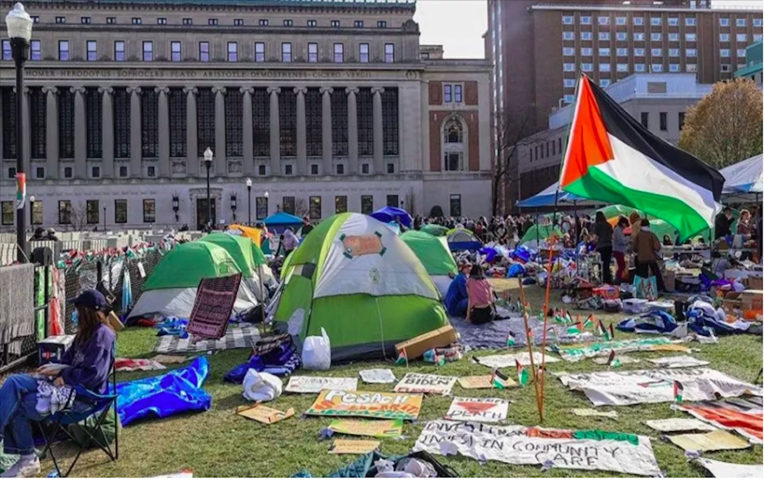 7 Eylül 2023'te Hamas'ın İsrail'e saldırmasının ardından ABD'nin desteğiyle İsrail'in Gazze'ye saldırmasının ardından başlayan gösterilerde, üniversiteye yapılan bağışların İsrail'de kullanılmaması ve ABD'nin İsrail'e askeri yardımlarını kesmesi gibi taleplerde bulunulmuştu.
