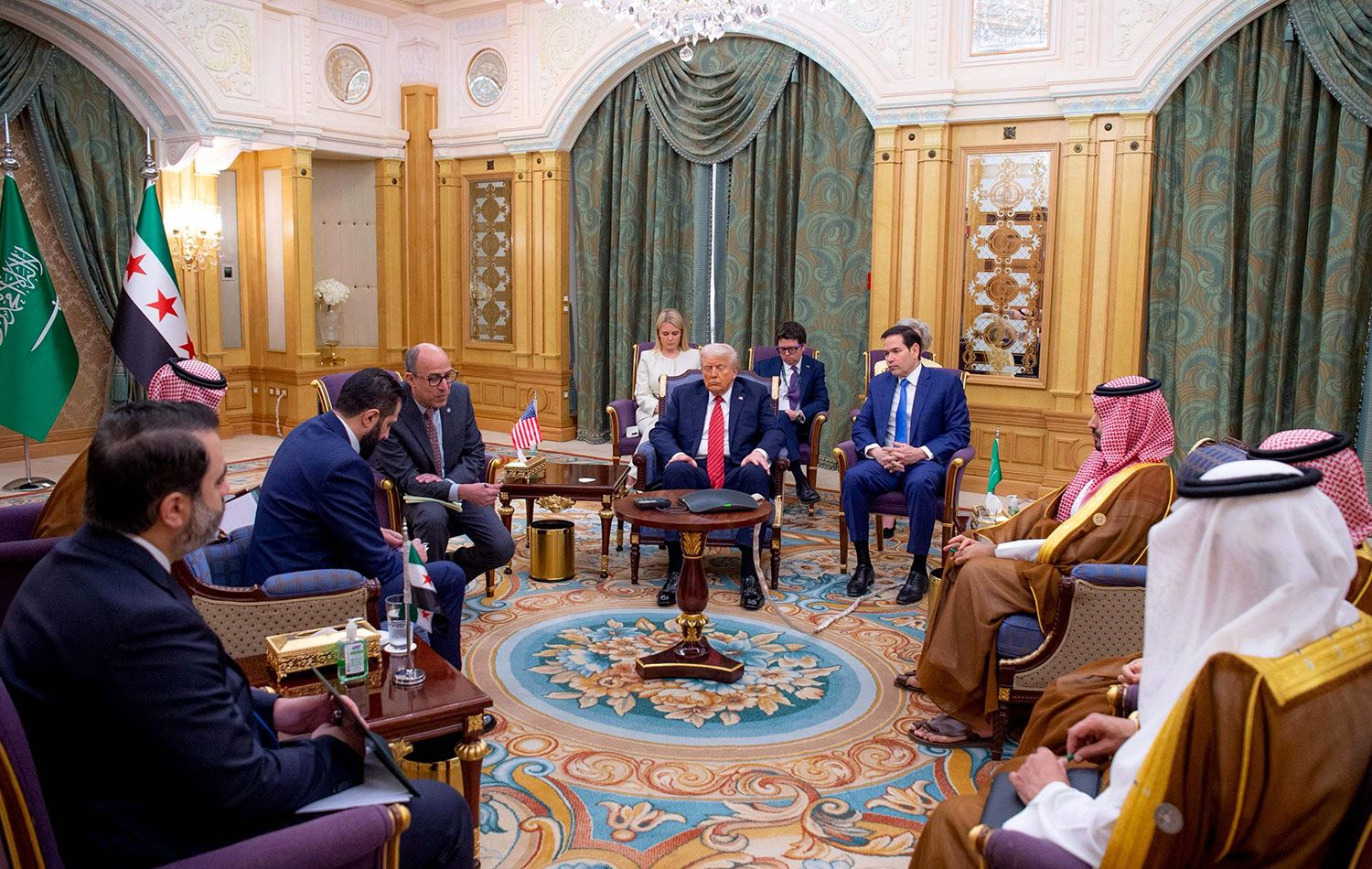 Today, President Trump, at the invitation of Crown Prince Mohammed bin Salman, met with Syrian President Ahmad al-Sharaa. President Erdogan of Turkey joined by phone. President Erdogan praised President Trump for lifting sanctions on Syria and committed to working alongside Saudi… pic.twitter.com/0yhyZbQ1o0