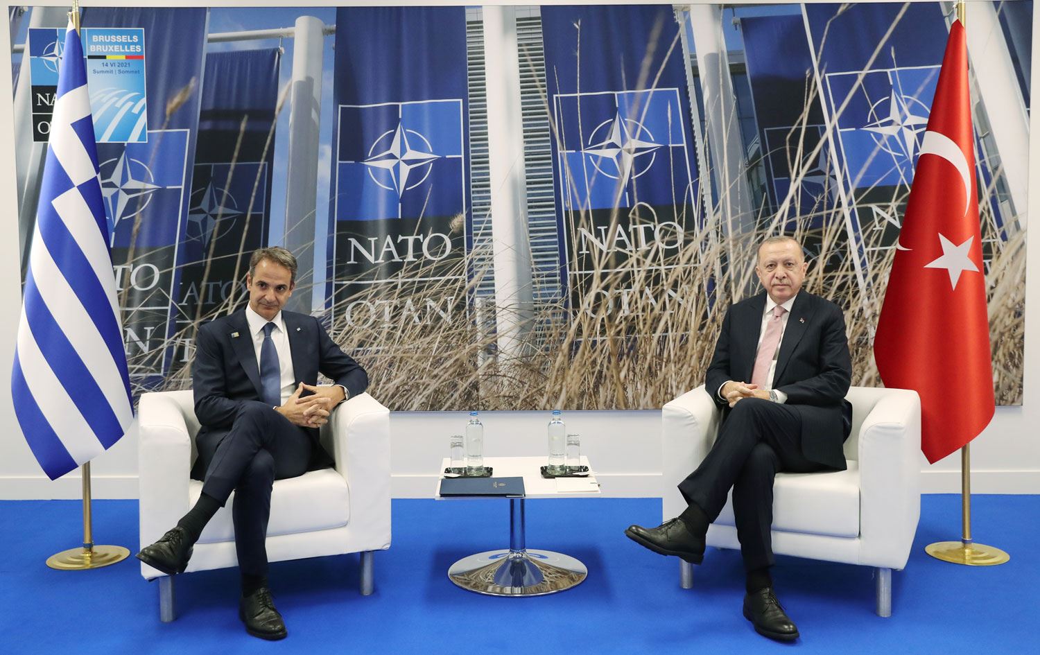 Recep Tayyip Erdoğan ile Miçotakis'in, NATO Zirvesi kapsamında NATO Karargahı'ndaki basına kapalı görüşmesi yaklaşık 1 saat sürdü.