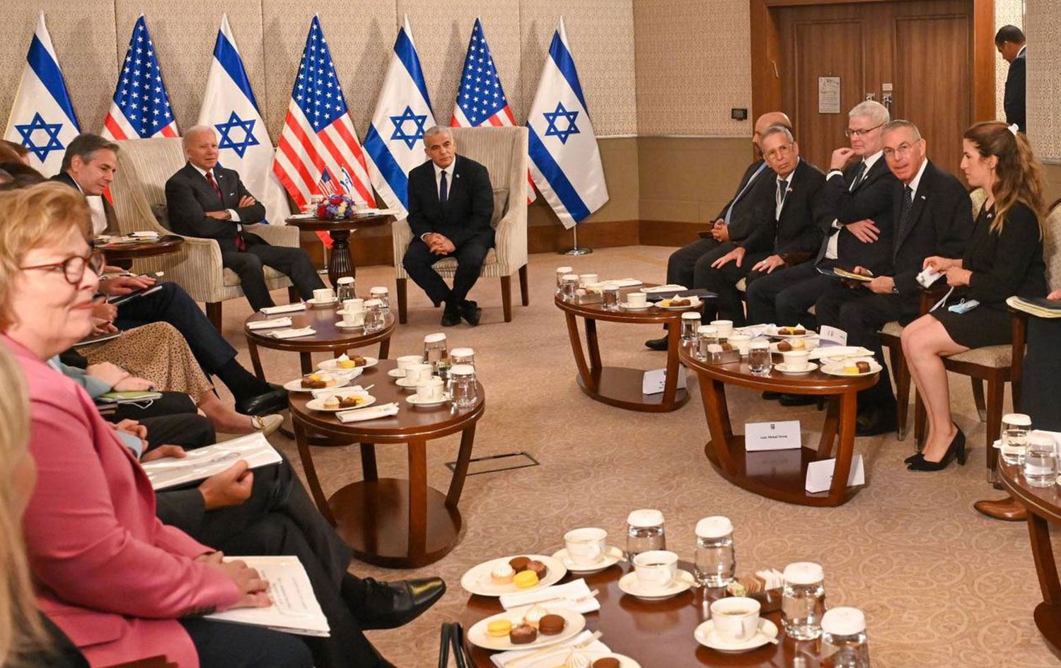 Biden, toplantıya, resmi temaslar kapsamında bulunduğu İsrail'de Başbakan Lapid ile iştirak etti.
