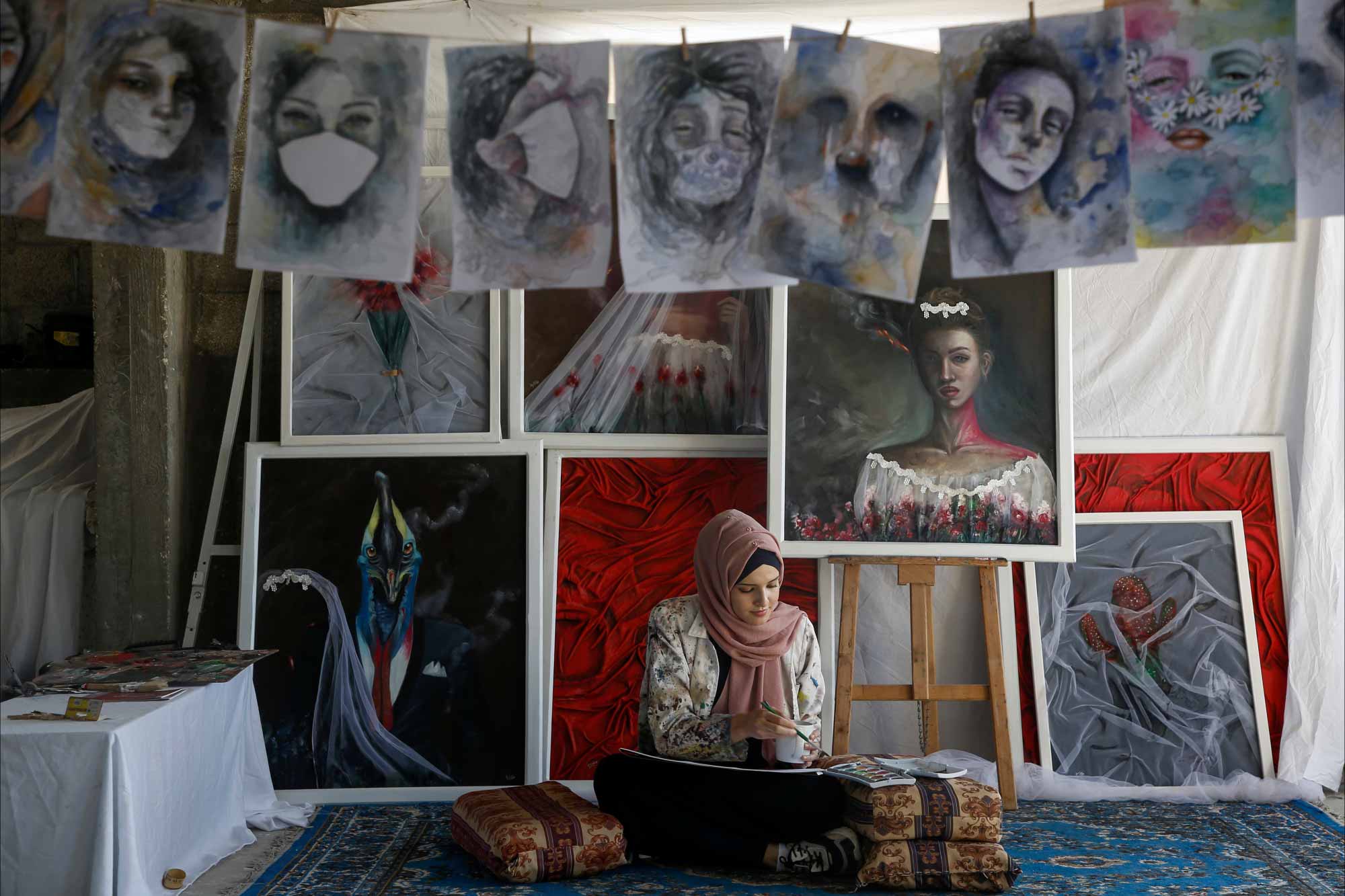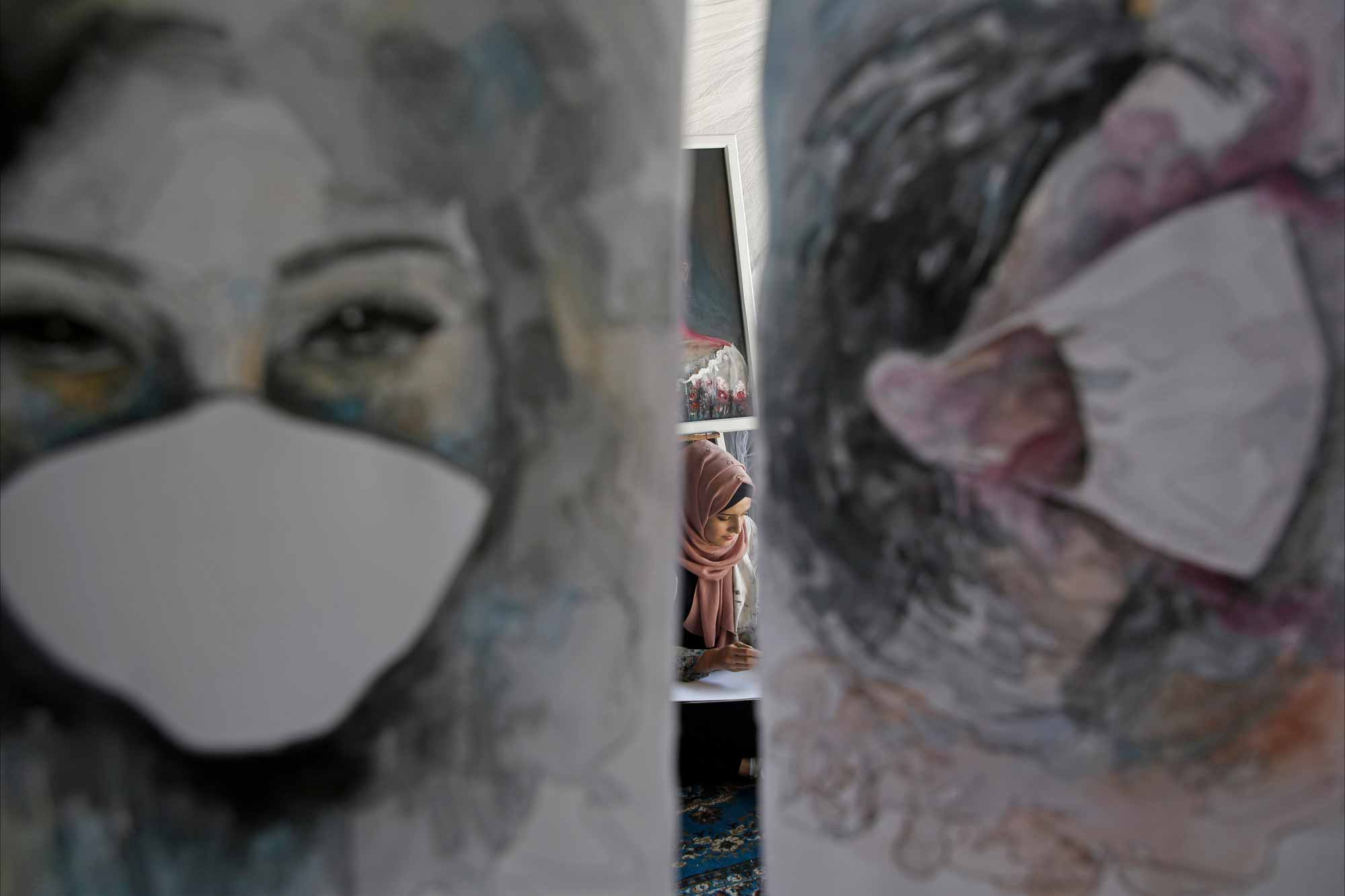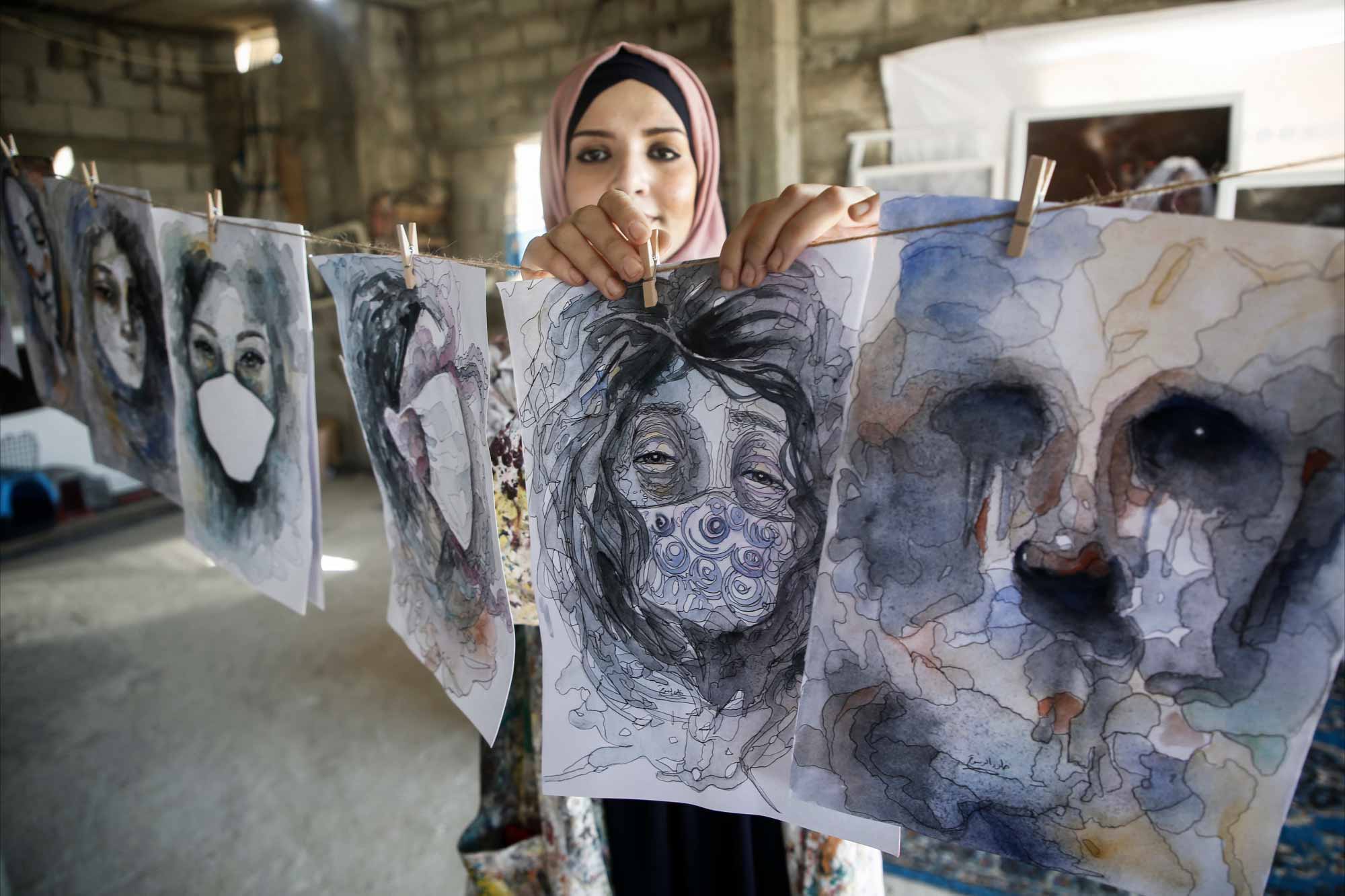 Gazze’nin güneyindeki Han Yunus kentinde yaşayan Hulud Desuki resimlerinde yeni tip koronavirüsüne yer veriyor.