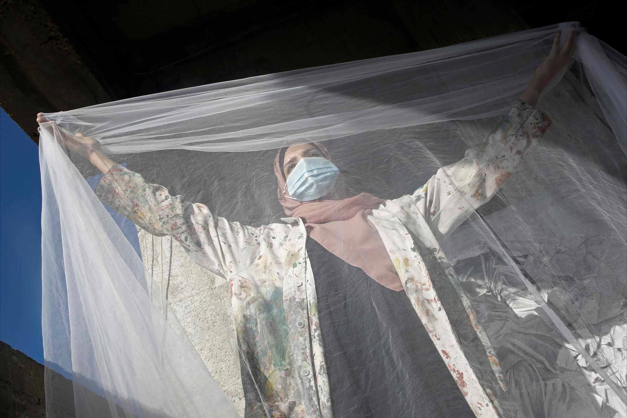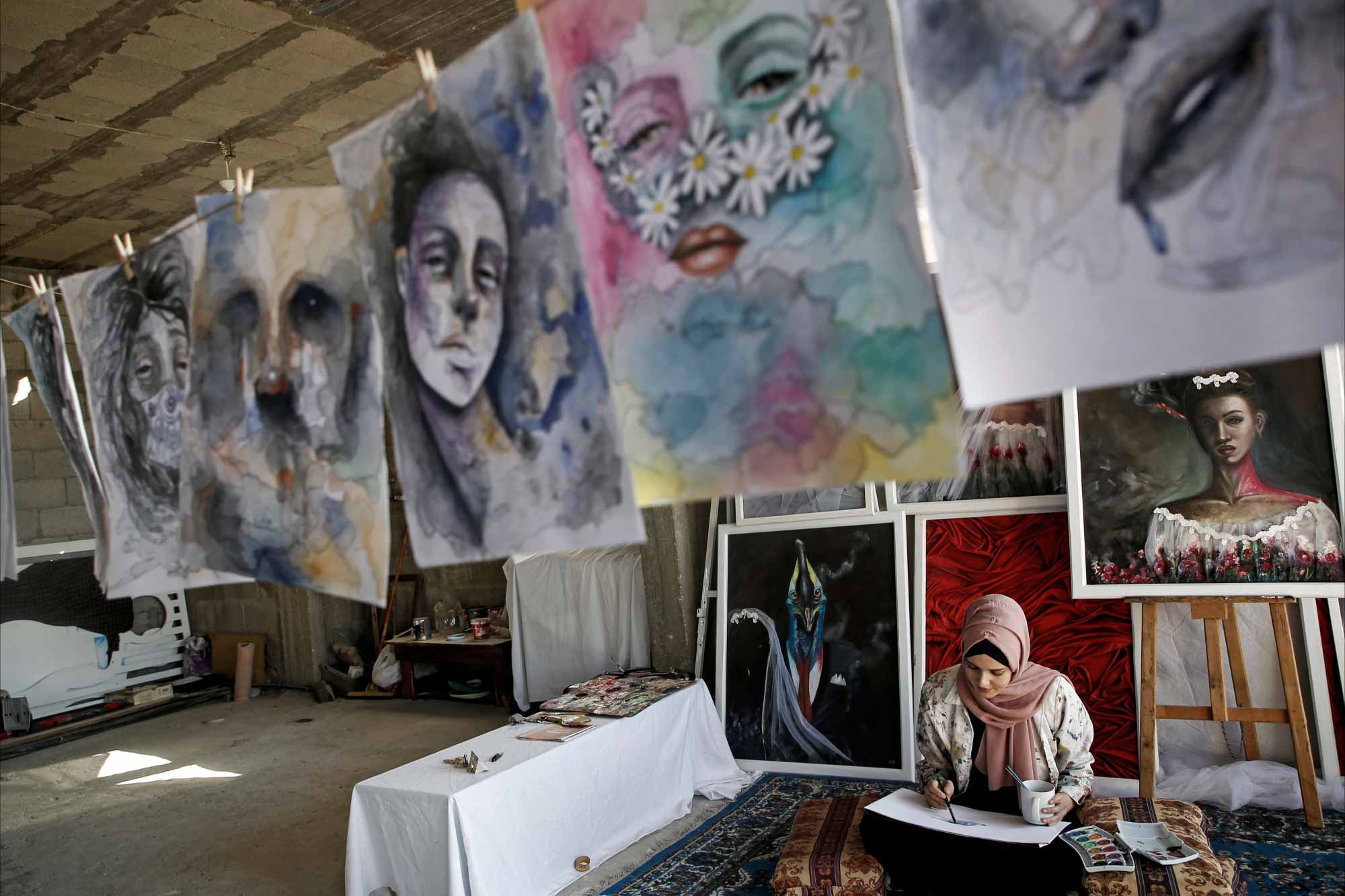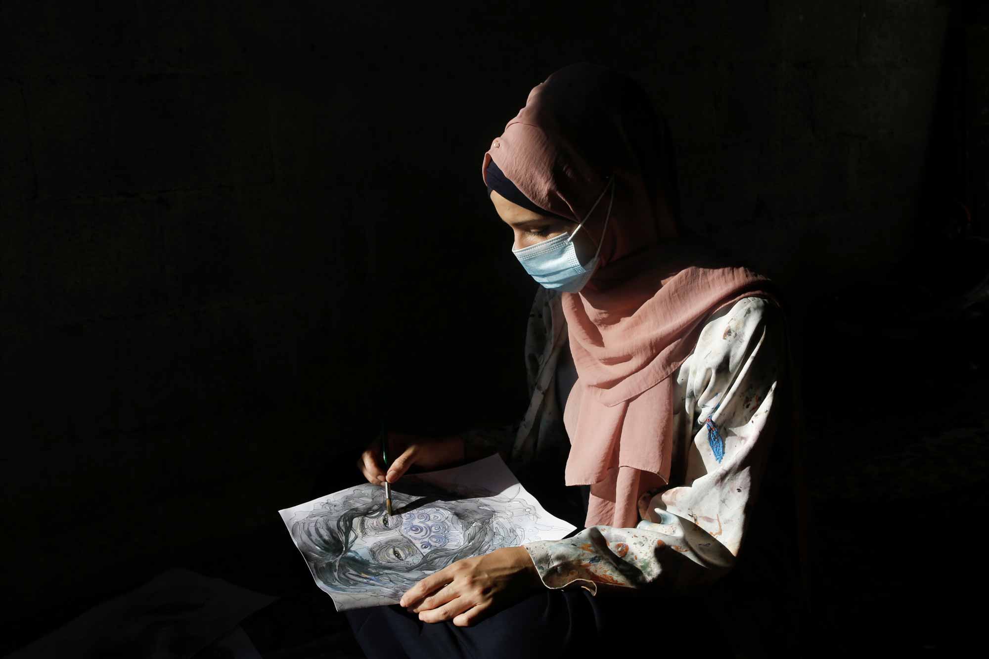 Gazze’nin güneyindeki Han Yunus kentinde yaşayan Hulud Desuki resimlerinde yeni tip koronavirüsüne yer veriyor.