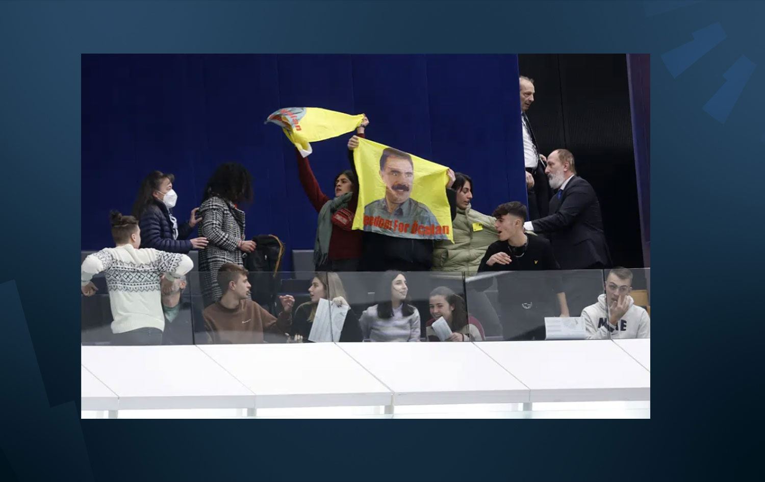 Kurdish independence militants interrupt the plenary session. They want freedom for Abdullah Öcalan and for the EU to remove them from the list of terrorist organizations. Enough with being complicit with Turkey’s repression of the Kurds. pic.twitter.com/Dt0FGyRNh2