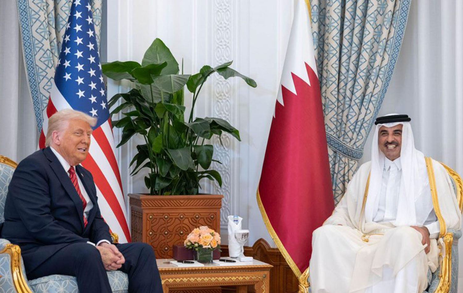 ABD Başkanı Donald Trump (solda), Ortadoğu turu ayağının ikinci ayağı olan Katar'ın başkenti Doha'da, Katar Emiri Temim Bin Hamed Al Sani (sağda) ile Emirlik Divanı'nda bir araya geldi. / Foto: AA
