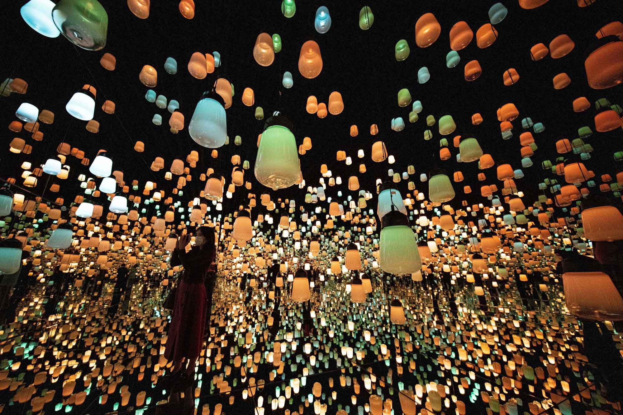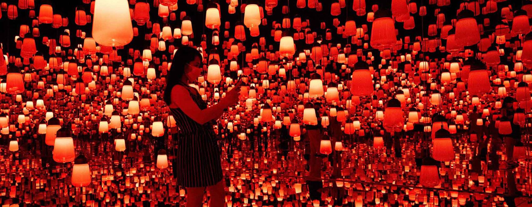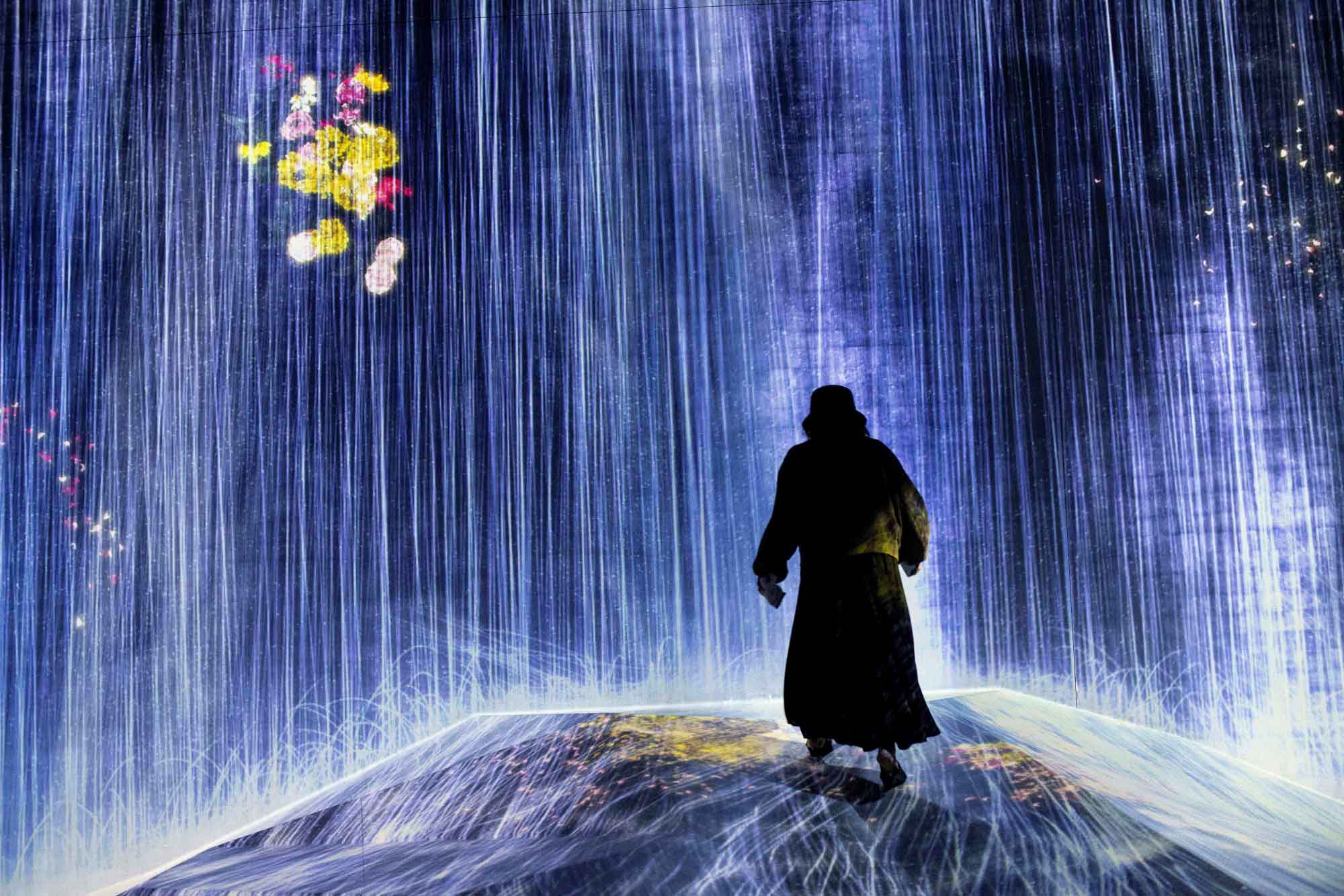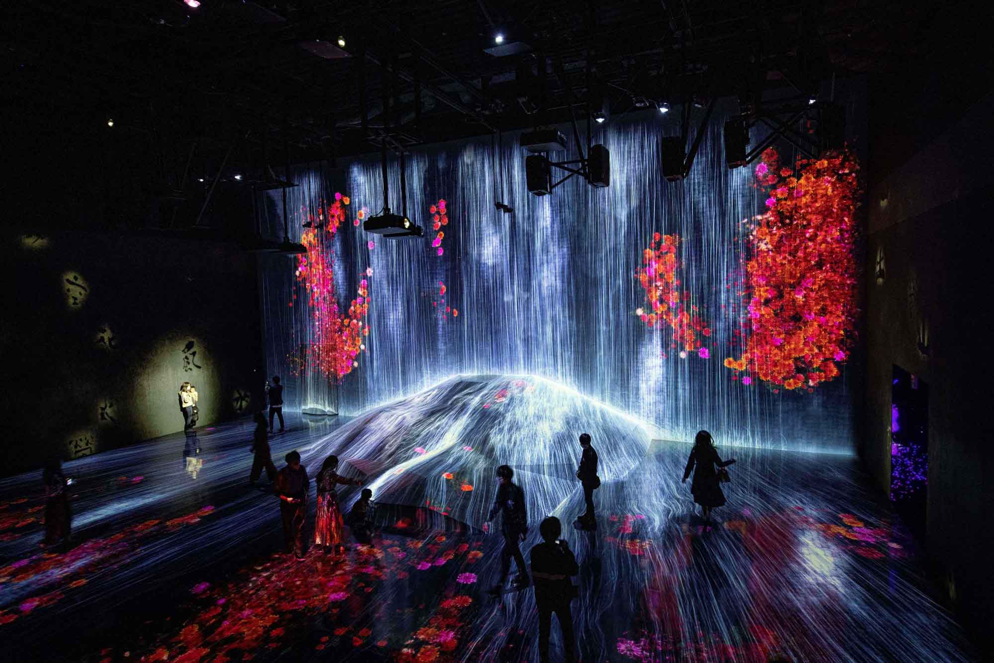 Tokyo’nun Odaiba adasında MORI Building Digital Art Museum adındaki büyük proje, 10.000 m²’lik labirent taban planına sahip alanda geçici sergileniyor.