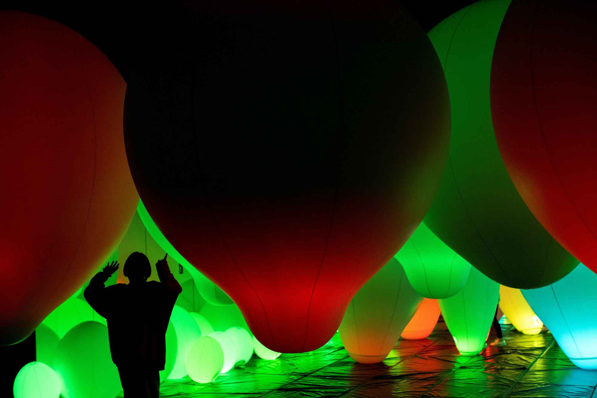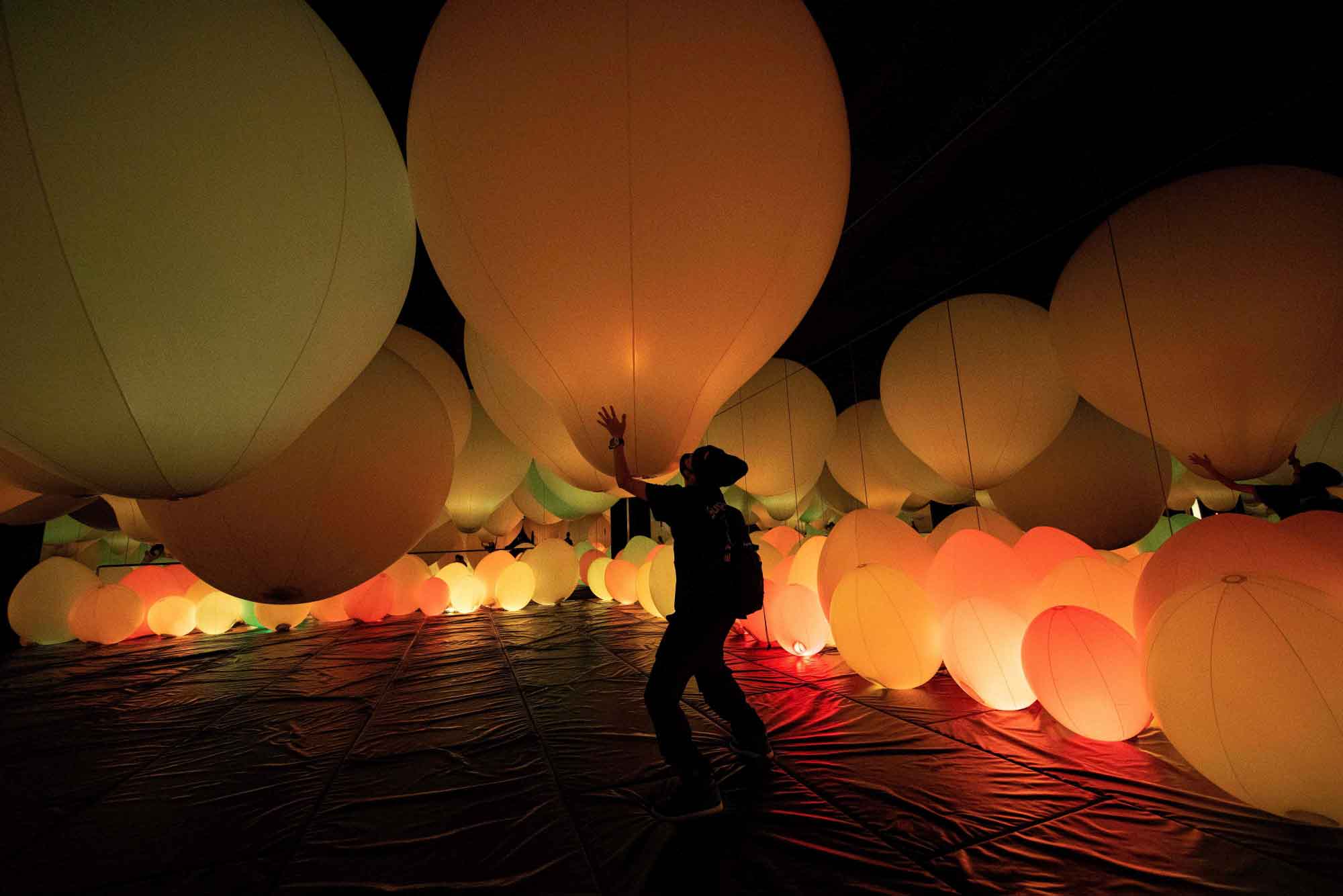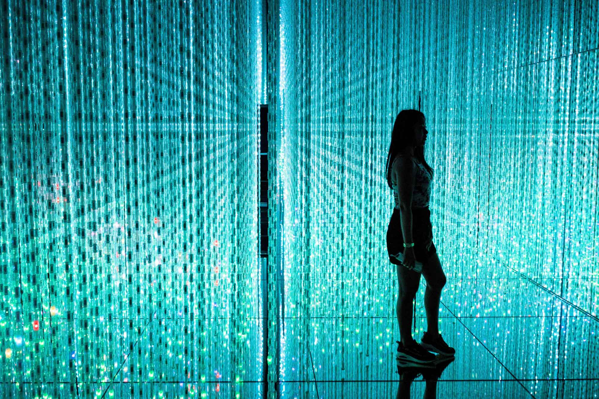 Tokyo’nun Odaiba adasında MORI Building Digital Art Museum adındaki büyük proje, 10.000 m²’lik labirent taban planına sahip alanda geçici sergileniyor.
