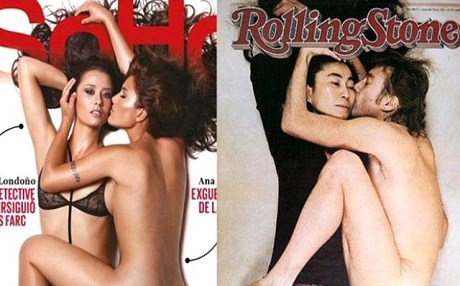 İki kadın, Beatles'ın efsane solisti John Lennon ile büyük aşkı Yoko Ono'nun, Lennon'un doğumgününde Rolling Stone dergisine verdikleri pozun aynısını Soho için sahneledi.
