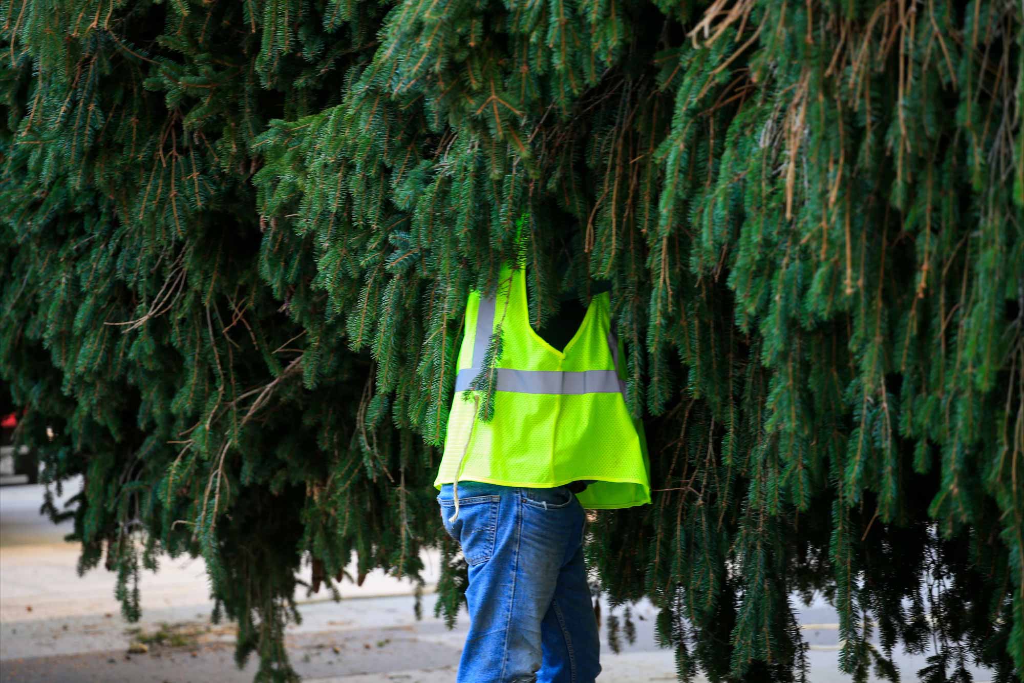 23 metre uzunluğundaki ağaç Cumartesi sabahı kamyonla dikileceği alana indirildi. Daha sonra bir vinç aracılığıyla dikildi.