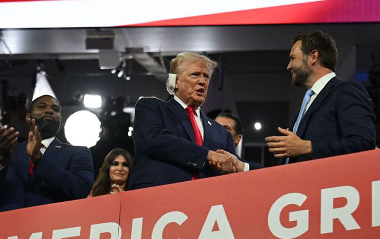 Kulağında bandajla kongreye katılan Trump'ın yanında bugün açıkladığı başkan yardımcı adayı J.D Vance de yer aldı.
