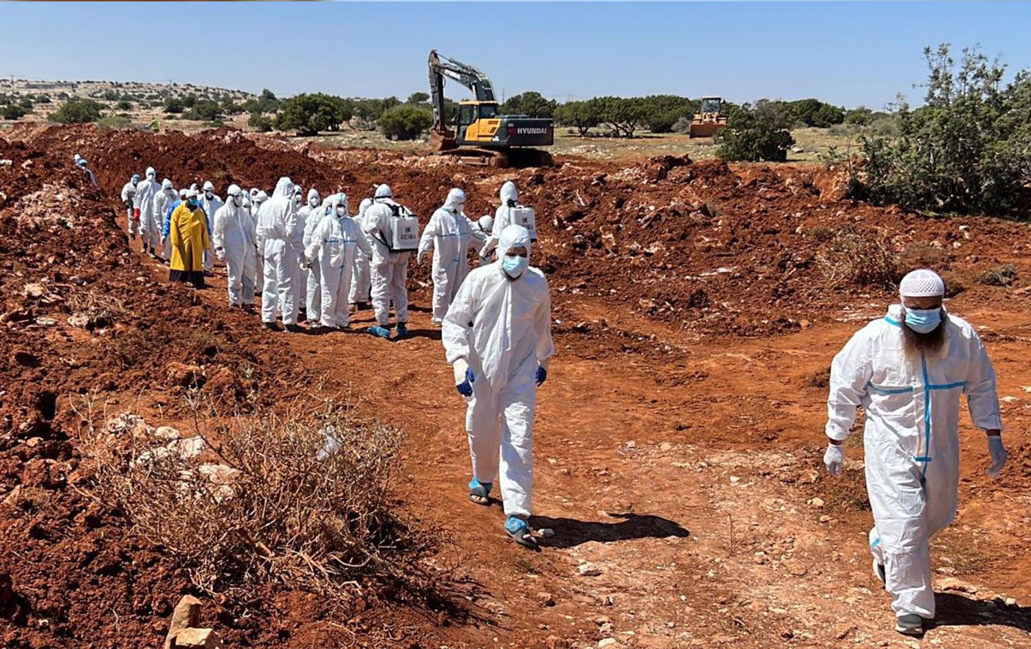 Derne kentinin 10 kilometre batısındaki Zahra el-Hamra bölgesinde oluşturulan toplu mezarlığa en son 12 naaş getirilerek, toplu şekilde defnedildi.