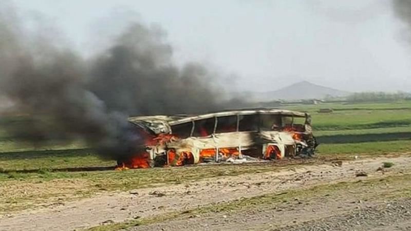 Afgan basınında yer alan haberlere göre, Hilmend'in Gerişk ilçesinde yolcu otobüsü, motosiklet ve akaryakıt tankeri çarpıştı.