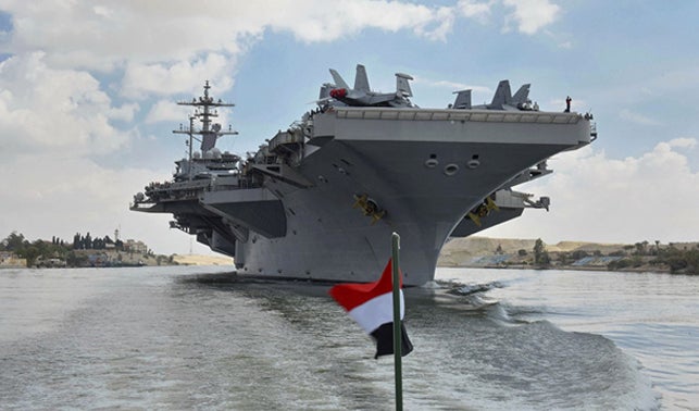 Foto: USS Abraham Lincoln, 9 Mayıs 2019 Perşembe, İsmailiye yakınlarındaki Süveyş kanalında güneye gidiyor, AP